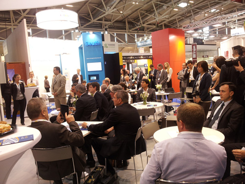 2012年6月13日,合能陽光參展德國慕尼黑intersolar國際光伏展,并受邀出席了俄羅斯能源部官方新聞發(fā)布會。