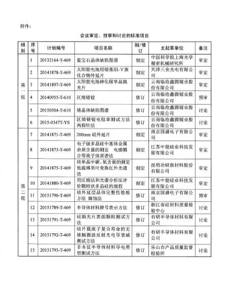 2016425日半導(dǎo)體材料標(biāo)準(zhǔn)工作會(huì)議在江蘇省泰州市召開(kāi),會(huì)議將對(duì)《藍(lán)寶石晶體缺陷圖譜》等15項(xiàng)半導(dǎo)體材料國(guó)家和行業(yè)標(biāo)準(zhǔn)進(jìn)行審定、預(yù)審和討論。
