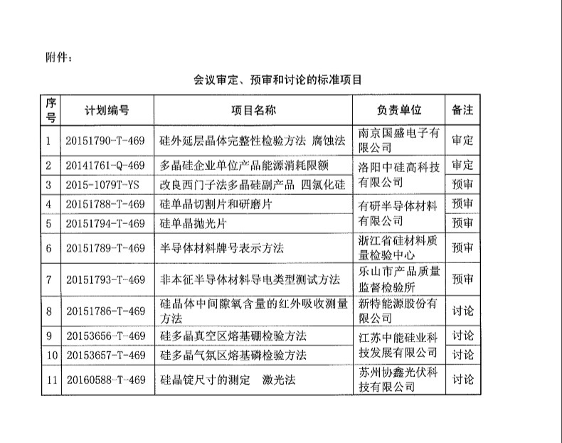 201697日半導體材料標準工作會議在新疆昌吉召開,會議將對《多晶硅企業(yè)單位產品能源消耗限額》等11項標準進行討論、預審、審定和任務落實。